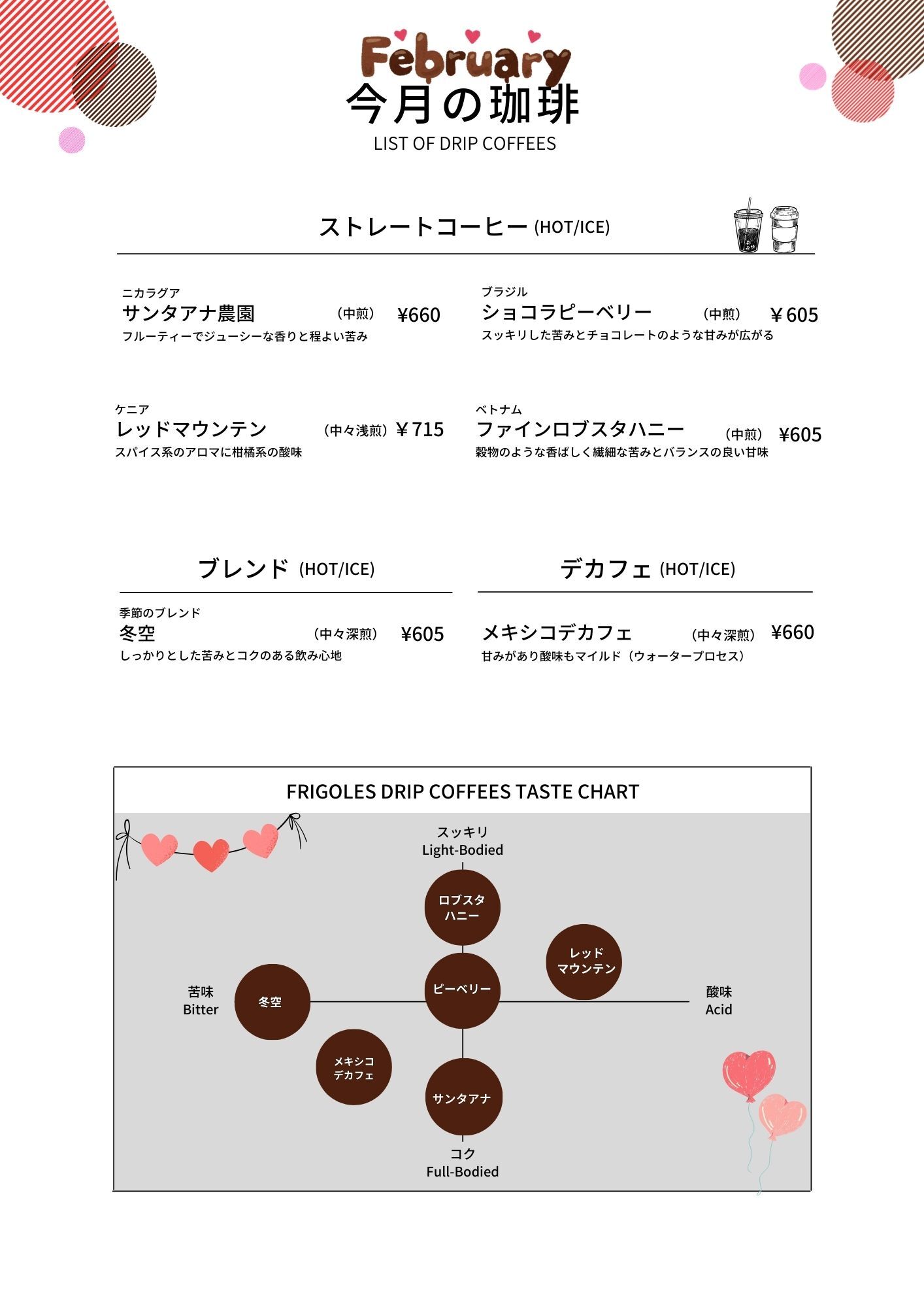 【仙台泉店】取扱い豆一覧表